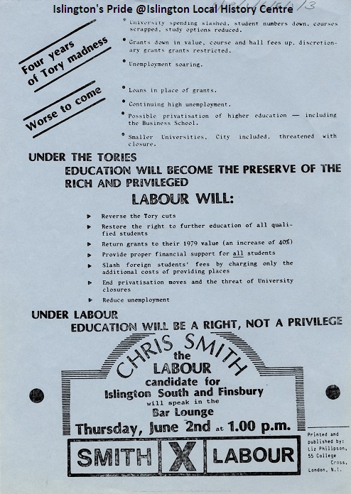 Scope and ContentA4 promotional flyer for the Labour Party and candidate Chris Smith with information on education issues and policies.