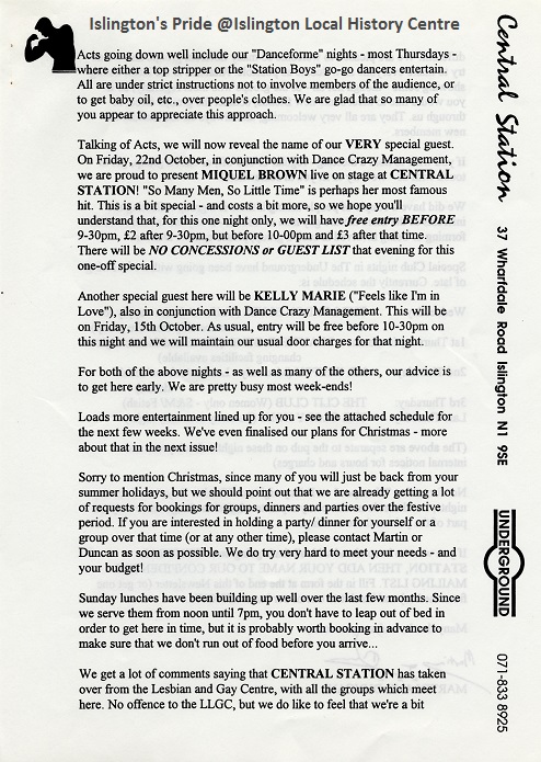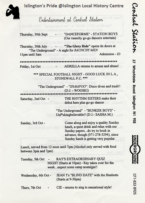 Scope and ContentCentral Station newsletter No. 12, including information regarding Stonewall FC, upcoming events and activities and special guests at Central Station. Also includes a programme of events and activities taking place as well as a list of groups that meet at Central Station. Contains some provocative language.