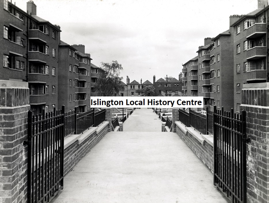 Scope and ContentBrecknock Road Estate, an early social housing block of 225 self-contained flats, designed by E.C.P. Monson (1872-1941) who also designed the Town Hall, completed 1939. The16 red-brick blocks of 5 storeys were built around 2 courtyards with Middle Way public path between them, shown here.