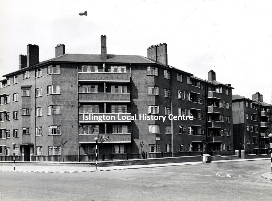 Scope and ContentExterior of Brecknock Road Estate with the Metropolitan Borough Coat of Arms.