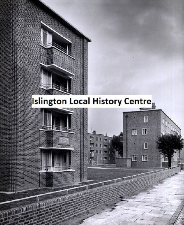 Scope and ContentBennett Court, a view (by Bedford Lemere & Co Ltd, Architectural and Industrial Photographers, Croydon) from Axminster Road, showing the communal laundry with Metropolitan Borough Coat of Arms.