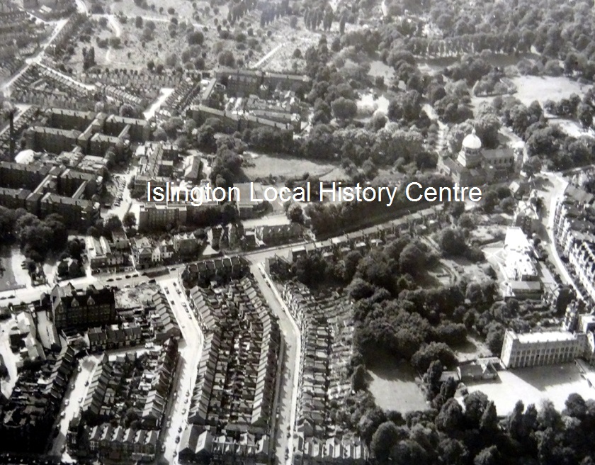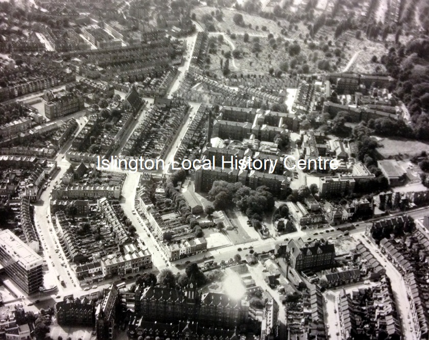 View of Highgate Hill looking north. Photograph also shows the Whittington Stone and the Whittington Stone Public House