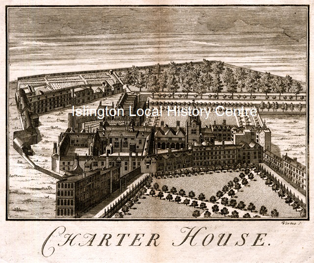 - NotesDiscoloured. Bookplate mounted with similar views 510030, 510031 & 510033 and 18th century descriptions of Charterhouse.