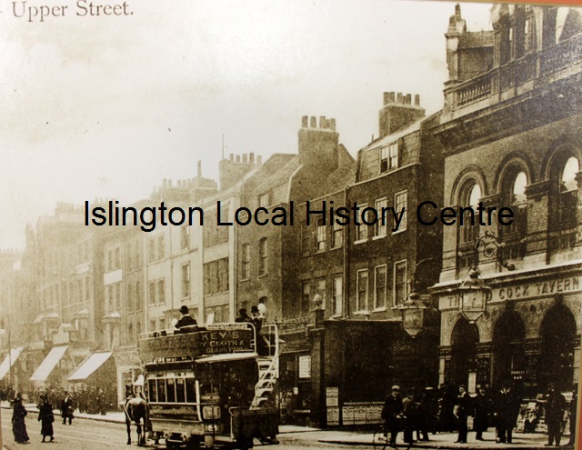 Upper Street near Highbury Corner showing the Old Cock Tavern.