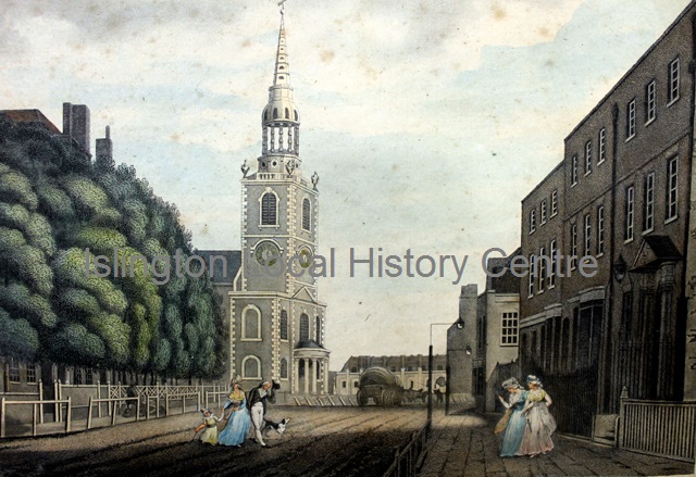 Street scene looking South down Upper Street at St Mary's Church, Cross Street in the distance.