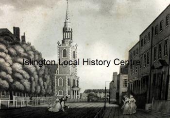 Street scene looking South down Upper Street at St Mary's Church, Cross Street in the distance.