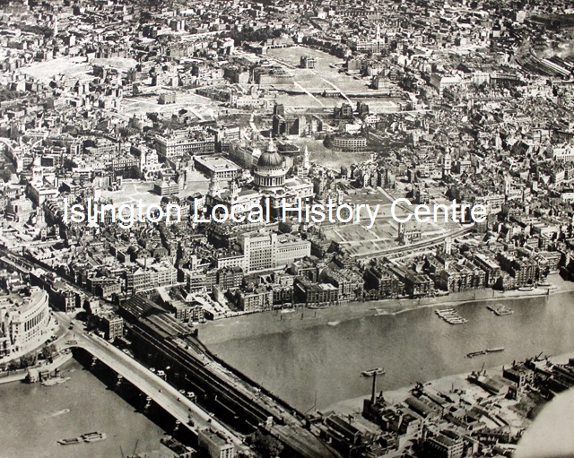 Aerial photograph looking North towards St Paul's Cathedral from the river Thames