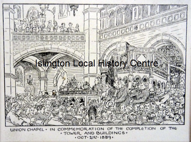 Crowded opening service for the second Union Chapel which was built to the designs of James Cubitt (1876)