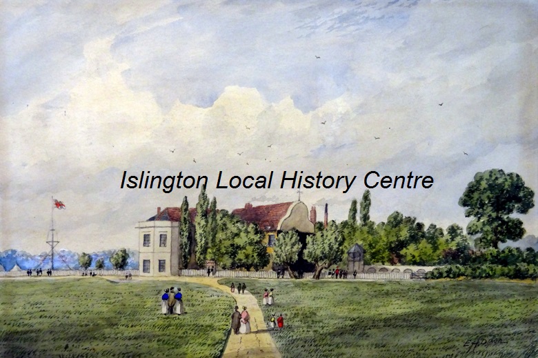 - NotesAlmost identical to 510207. Signed and dated 1840. Handwritten, initialed caption glued to back, presumably added later by artist (c.1870?) 'Old Copenhagen House, Islington, 1840. The House formerly stood on the spot now occupied by the Clock Tower of the New Cattle Market. Hampstead in the distance from the path leading from the Caledonian School'.