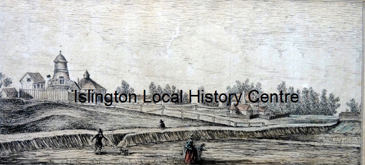 Fields round New River Head's earliest buildings seen from Grays Inn Road area