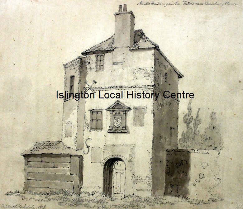 Fowler House, the mansion of the lords of Barnsbury was pulled down in 1850. At the end of the garden was Queen Elizabeth's Lodge, so-called because she may have passed through, but with the arms of Sir Thomas Fowler posthumously dated 1655. Here in disrepair.