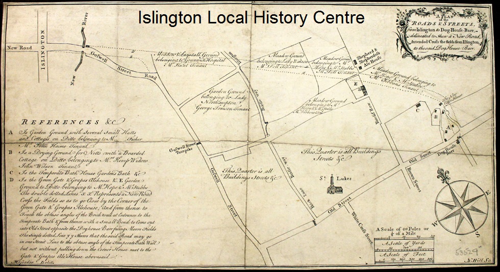 - TitleA Plan of the Roads and Streets from Islington to Dog-House Barr delineated to shew a New Road [image]