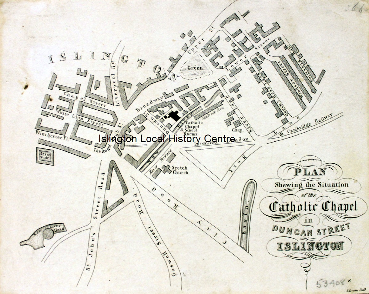 - TitlePlan shewing the situation of the Catholic Chapel in Duncan Street Islington [image]