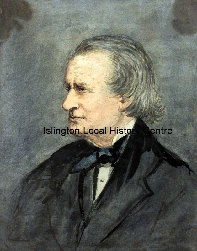 Head and shoulders portrait of Samuel Phelps, 19th century actor-manager of Sadler's Wells Theatre. He lived in Canonbury Square
