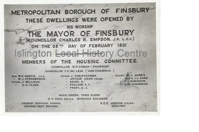 Plaque commemorating the Mayor opening Royley House flats at 104-110 Old Street