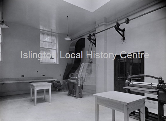 Corner of the room with mangles ready for use in Ironmonger Row Baths (opened 1931)