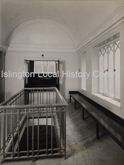 Empty waiting area in Ironmonger Row Baths (opened 1931)