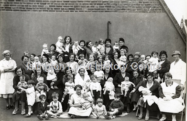 - TitleLeage Street Welfare Centre, mothers and babies photographed on the roof [image]