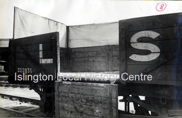 Empty LMS (London, Midland and Scottish Railway) refuse truck on track at King's Cross siding