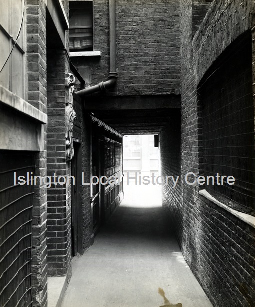 Southern exit from Whitehorse Alley into Cowcross Street, photographed as part of a survey of the area before demolition.
