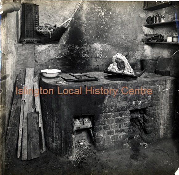 Wash-house in 9 Pump Court available for all the tenants of 1-9 Pump court, water had to be carried to and from these coppers, photographed as part of a survey of the area before demolition.