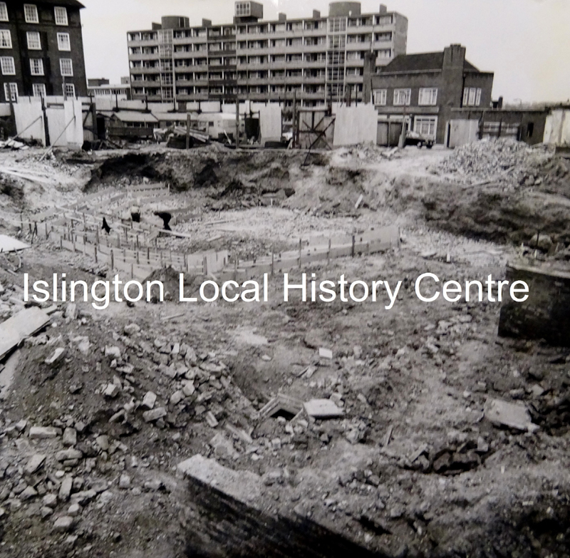 Works in progress in May 1974 for the extension to Barnsbury Park (renamed Barnard Park) new community playground, looking south towards Copenhagen Street and the George the Fourth pub.