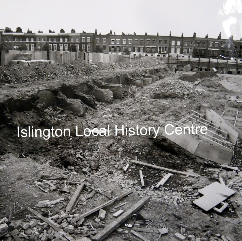Works in progress in May 1974 for the extension to Barnsbury Park (renamed Barnard Park) new community playground looking east towards Barnsbury Road.