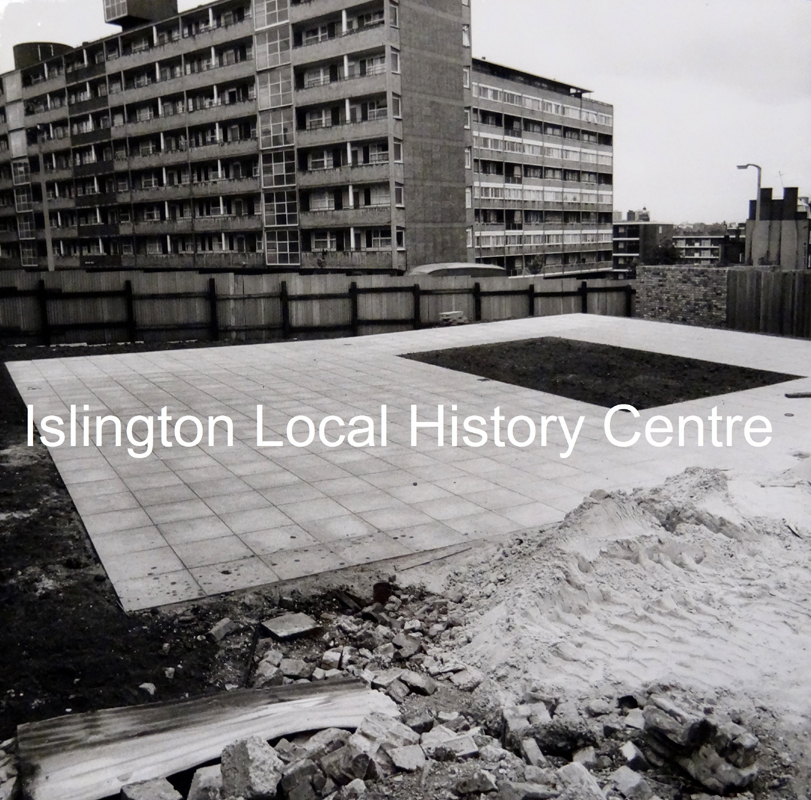 Works in progress in May 1974 for the extension to Barnsbury Park (renamed Barnard Park) new community playground looking south towrds Copenhagen Street.