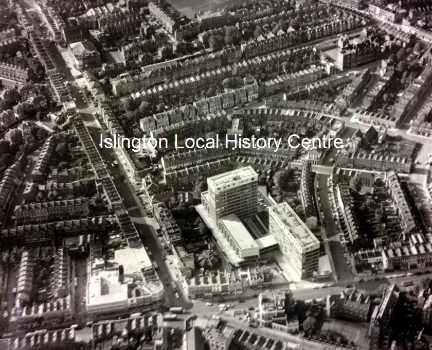Aerial view looking south from Archway down Junction Road with Highgate Hill with Highgate Hill and the Whittington Hospital shown at the bottom of the photograph.