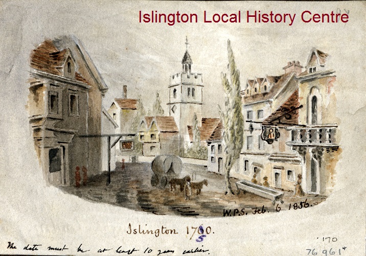 - NotesRather dirty, stuck to card. Initialled by artist W.P.S. and dated February 6th 1856 and originally captioned 'Islington 1760'.