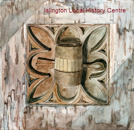 Rebus (a visual play on words - crossbow bolt passing through a barrel or tun) of William Bolton Prior of St Bartholomew's Priory in Smithfield used in his summer retreat at Canonbury.