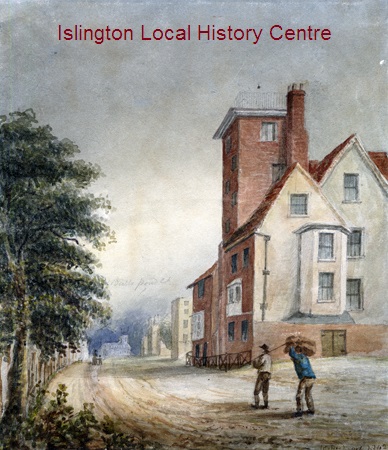 Canonbury Tower looking East along the road with two laboureres in the foreground.