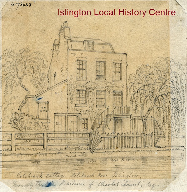 Original drawing of the cottage beside the new river which was formerly the residence of the writer Charles Lamb and his sister Mary 1823-6.