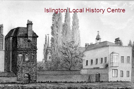 Fowler House, the mansion of the lords of Barnsbury was pulled down in 1850. At the end of the garden was Queen Elizabeth's Lodge, so-called because she may have passed through, but with the arms of Sir Thomas Fowler posthumously dated 1655. There is another building here too and the spire of St Mary's seen between them.