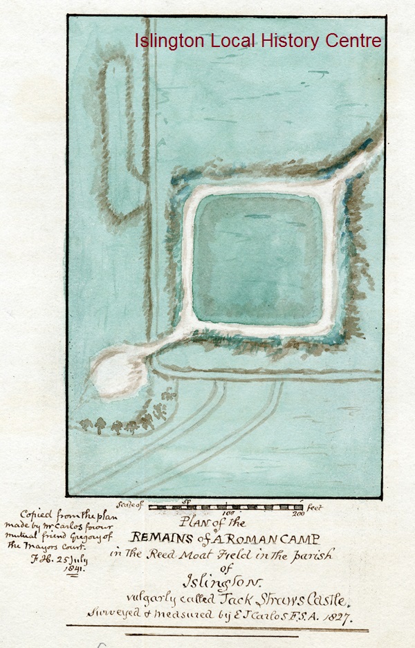 Remains of the Roman Camp in the Reed Moat Field now more likely to show the moat around Barnsbury Manor dating from the 11th century.