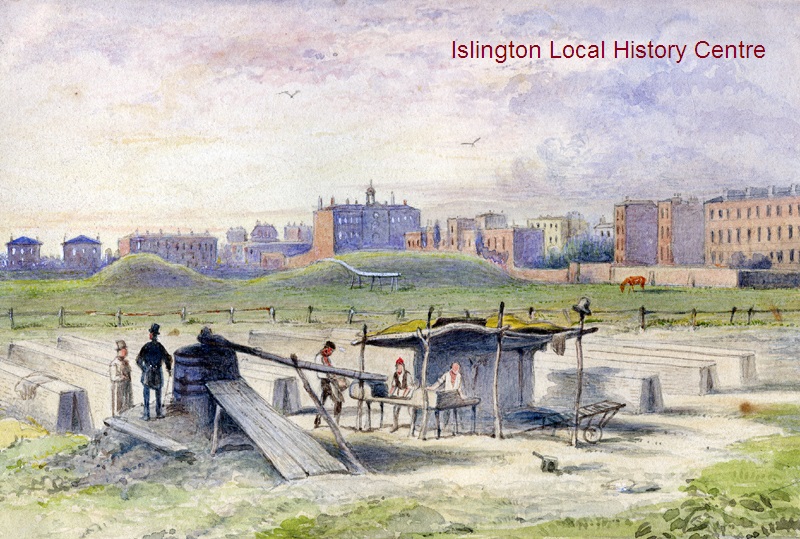 Building the Fourteen Acres Stonefield (Stony Field) Estate with the parish workhouse and terraces in the background
