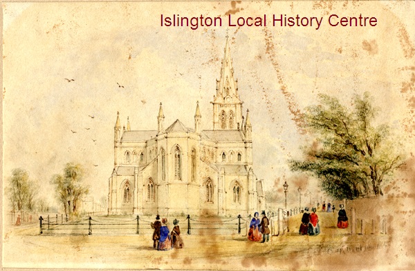 East end of Christ Church soon after completion by architect Thomas Allom, with people walking nearby