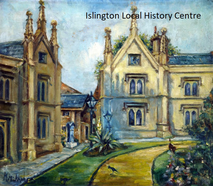 Part of the complex of Gothic Revival almshouse buildings and landscaped gardens built 1822-4 by George Smith for the Mercers' Company, demolished 1967 to widen Archway Road.