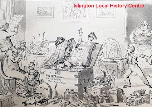 Plate 1 of 'The Progress of a Midshipman exemplified in the career of Master Blockhead' shows a boy in midshipman's uniform with his family while his sea-chest is prepared for the West Indies, ancestral naval portraits hang behind. Based on the life of the English novelist Captain Frederick Marryat.