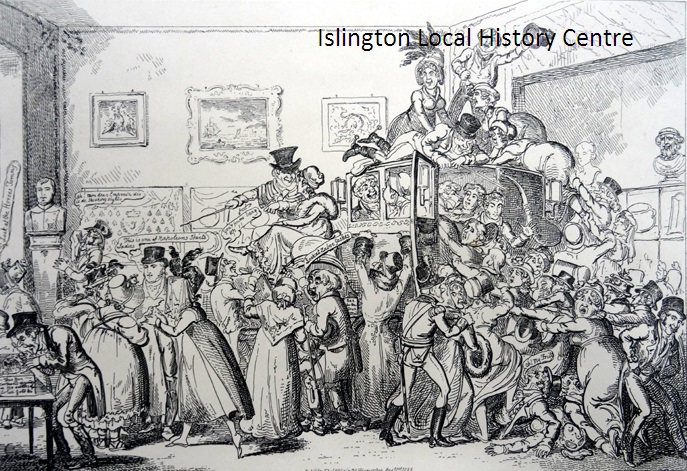 A scene at the London Museum Piccadilly,-or- A peep at the spoils of ambition, taken at the battle of Waterloo- being a new tax on John Bull for 1816 &c &c. Captured by the Prussians, Napoleon’s carriage was purchased by William Bullock and seen by about 220,000 visitors at his Egyptian Hall - some of whom are here seen swarming over it.