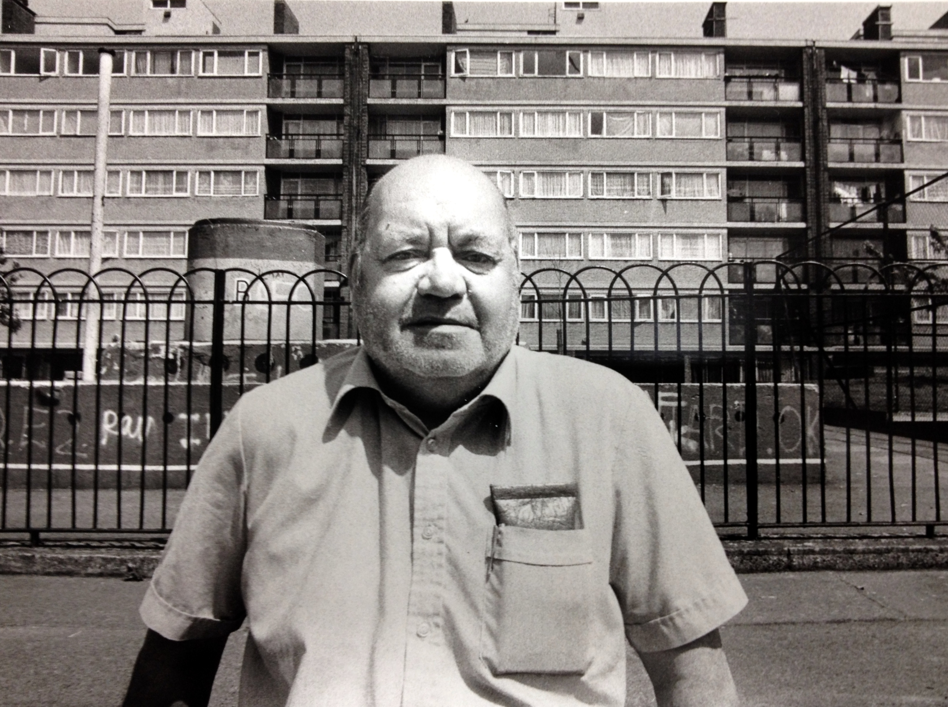 George Baylis, Tenants' Association Representative for Barnsbury Estate, outside the estate