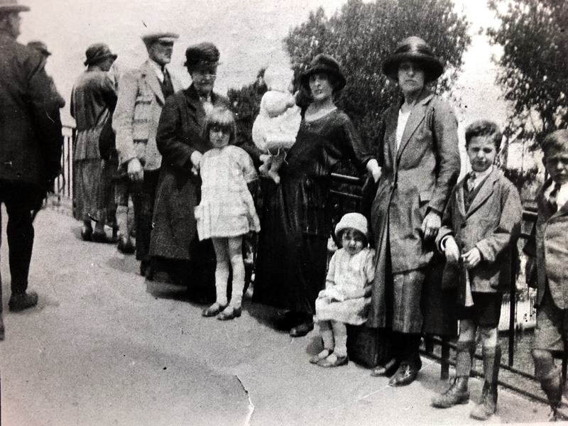 Family group on outing to Alexandra Palace including various Brewster family members (Aunt Polly and Charlie) of 1 River Terrace (now River Place) and their Isaac (of Canonbury Mansions) and Adams cousins (Louis and Gladys)